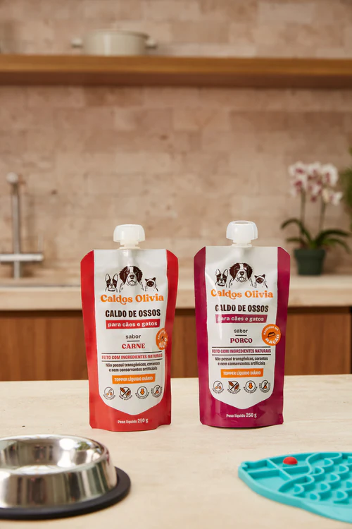 Eleve facilmente o sabor e a nutrição da refeição do seu pet com os deliciosos Caldos Olivia, totalmente natural, feito com ingredientes grade humana, seguro para pets e que fará até os comedores mais exigentes implorarem por mais.