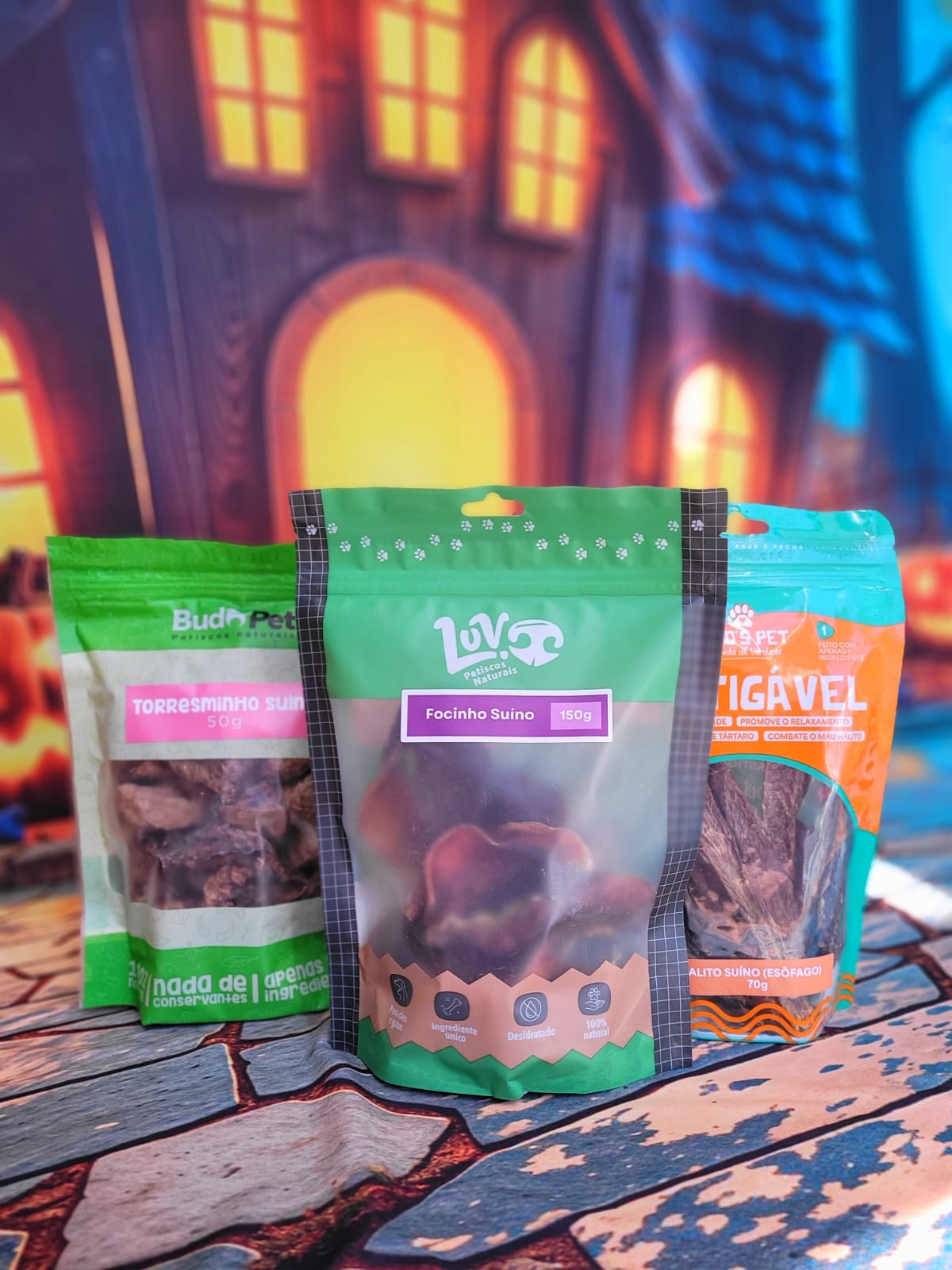 Uma seleção gourmet pensada para pets que amam mastigar com prazer e segurança. Texturas naturais, sabor autêntico e um toque temático para transformar o Halloween em um momento de cuidado e deleite.