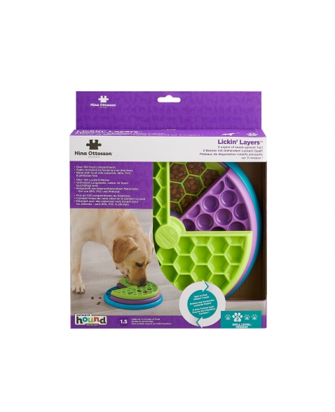Comedouro lento misturado com quebra cabeças nível 2, que possui 3 camadas de diversão com recompensas. Perfeito no combate ao tédio porque mantém o cão ocupado e feliz. Feito com plástico de grau alimentar, sem BPA, PVC ou ftalato. Capacidade de 1 xícara de alimento seco ou meia de alimento úmido. Pode ser usado com alimento seco ou úmido. Perfeito para cães de todas as idades, tamanhos ou raças. Fácil de limpar.