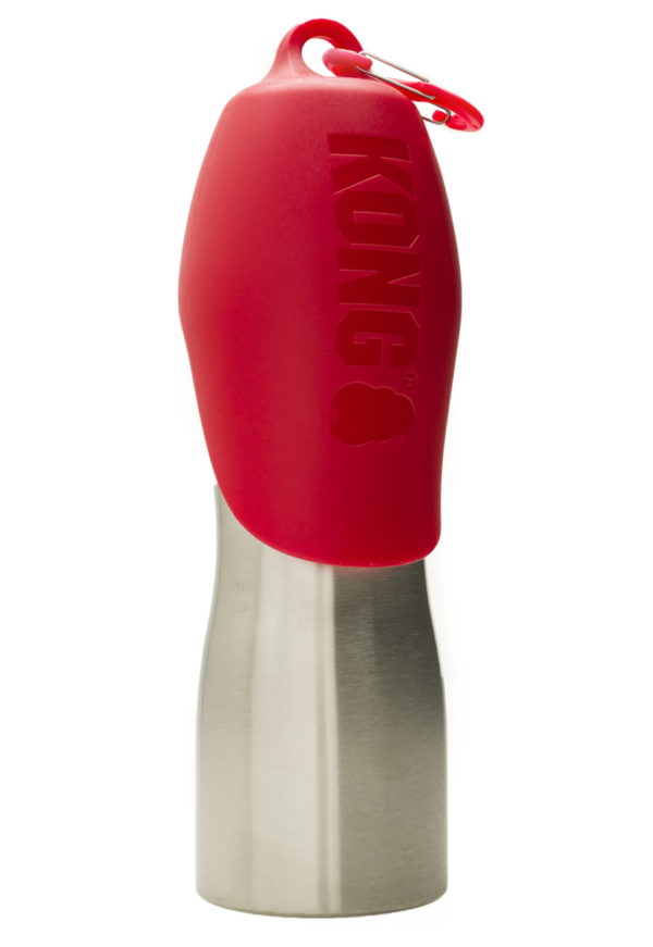 O design patenteado das tampas serve para que funcionem como um bebedouro de água seguro para seu cão. Possui um mosquetão para prender à cintura ou em outro local.