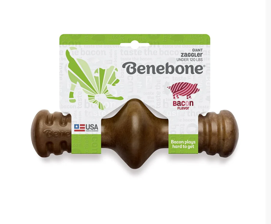 O Benebone Zaggler possui um formato exclusivo e não importa como seu cão segure, sempre haverá uma ponta para que ele roa com conforto.Além disso, ele gira e pode ser jogado girando para maior diversão. Além disso, seus diferentes ângulos, mantêm o cão entretido por mais tempo, pois ele é estimulado de diversas formas.
