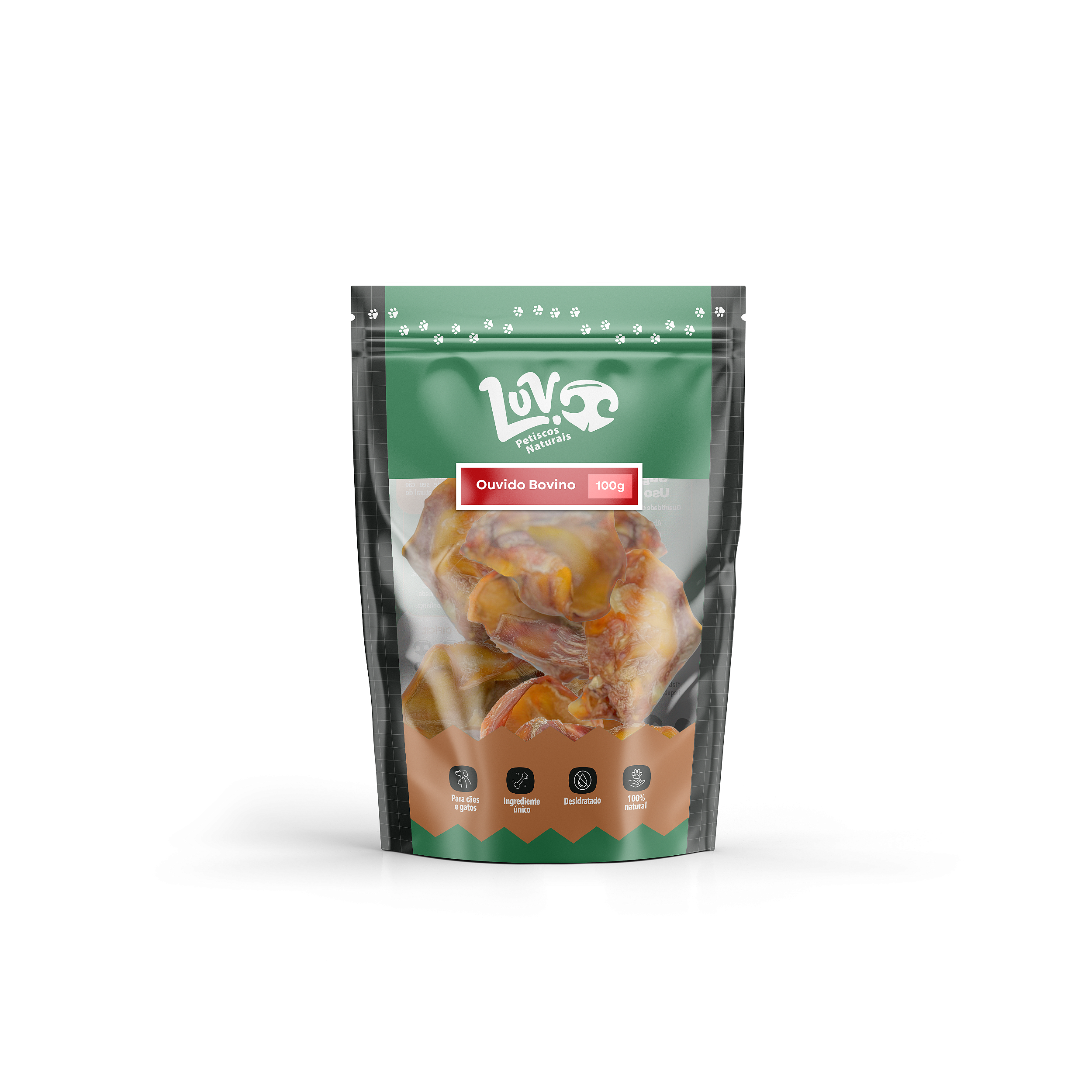 Contém 100 gramas de ouvido da orelha de bovino (de 4 a 6 unidades).