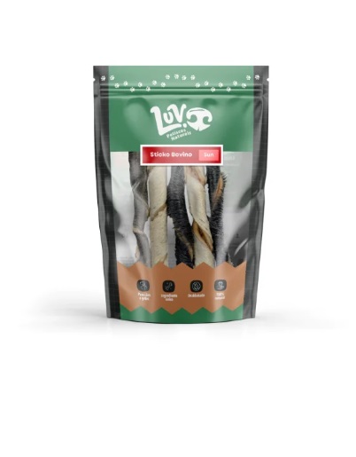 O Pele de Boi Stick é um mastigável altamente resistente, ideal para cães que amam roer! Cada unidade é trançada com 2 tiras de pele bovina, tornando-se um dos mastigáveis mais duráveis da linha. Comparado ao búfalo, a pele de boi possui pelos mais finos e numerosos, proporcionando uma experiência de mastigação ainda mais atrativa e eficiente.