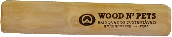 A madeira do café é ideal, pois é fibrosa. Não solta farpas, e as fibras são celulose que ajudam na digestão do cão e limpeza dos dentes.